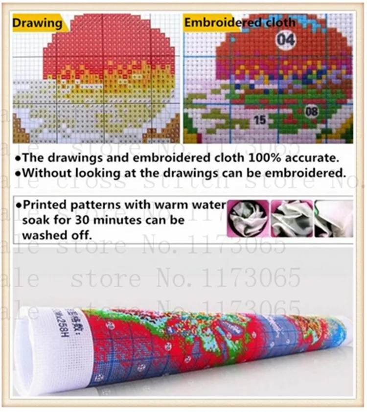 - The pattern has been printed on the cloth(11CT printed), so before finishing stitching, the cloth cannot touch water, otherwise the printed part will disappear.