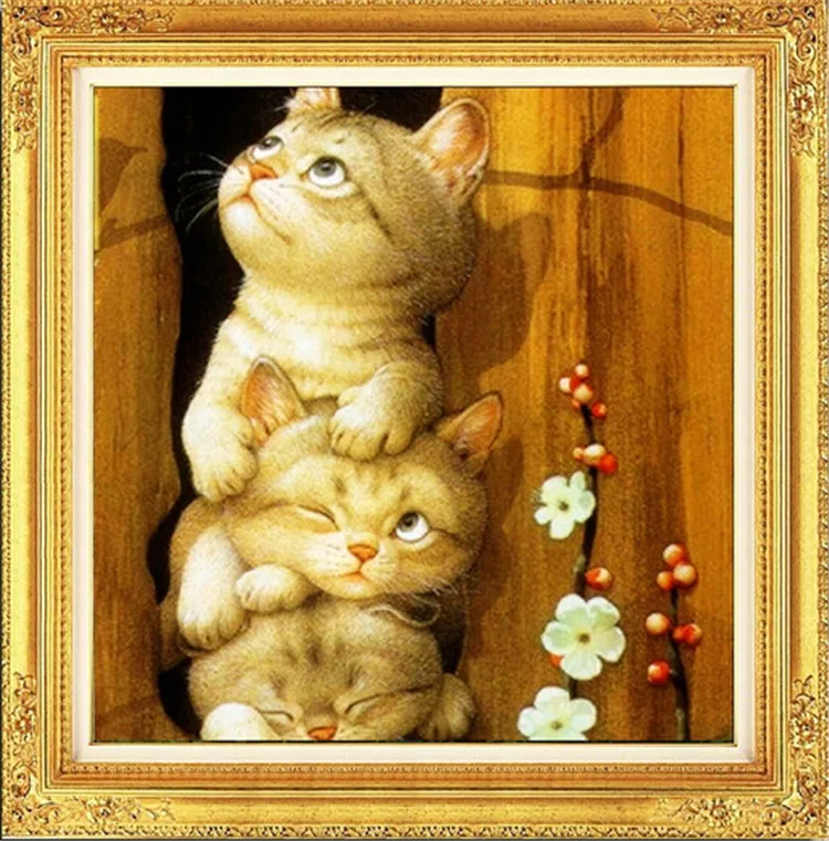 Needlework DIY DMC Cross stitch, full Embroidery kitsvunfinished Sets three cats pattern enough thread factory wholesale