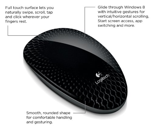 -. Binding : Personal Computers -. Brand : Logitech -. Color : Black -. EAN : 0071040193311 -. Feature : Full touch surface: Swipe, scroll, tap and click with smooth control wherever your fingers rest on the touch surface / Designed for Windows 8: Glide through Windows 8 with six intuitive gestures / Comfortable shape: Smooth, rounded design for comfortable handling and gesturing / Multi-surface tracking: Laser-grade optical sensor delivers precision control on virtually any surface / Unifying receiver: One tiny wireless receiver connects up to six compatible mice and keyboards using just one USB port -. IsAutographed : 0 -. IsMemorabilia : 0 -. Label : Logitech -. Manufacturer : Logitech -. Model : 910-003334 -. MPN : 910-003334 -. OperatingSystem : windows 8 -. PackageQuantity : 1 -. PartNumber : 910-003334 -. Platform : Windows / Windows 8 -. ProductGroup : Personal Computer -. ProductTypeName : COMPUTER_INPUT_DEVICE -. Publisher : Logitech -. Studio : Logitech -. Title : Logitech Touch Mouse T620 with Full Touch Surface for Windows 8 - Graphite -. UPC : 071040193311