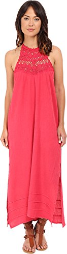 Product DescriptionWoven gauze maxi dress with pigment over dye, hand crochet yoke, low scoop back and pin tucks at hem.0