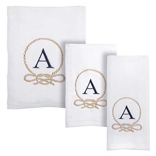 (Traditions)/Bedding Bath/Bath/DIRECT FROM USA/Traditions White Coastal Embroidered Monogram Towel Collection, 3-Piece Set, Bath, Hand and Fin...