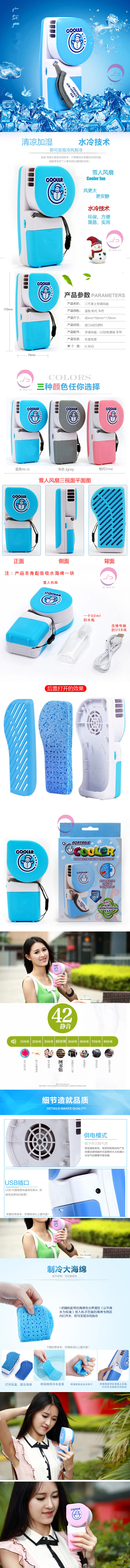 There are three colors: pink, sky blue, black. Equipped with a 60ml bottle, a USB cable connected to a computer, and a water-cooled sponge. The method is also very easy to use: as long as the product comes with a uniform droplet dripping bottle of water in the water used sponge. Just give it electricity, will be able to work. Since the sponge using advanced nano-products can be used three or four years without replacement. Supermarkets generally sell.