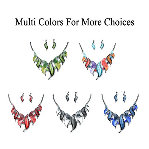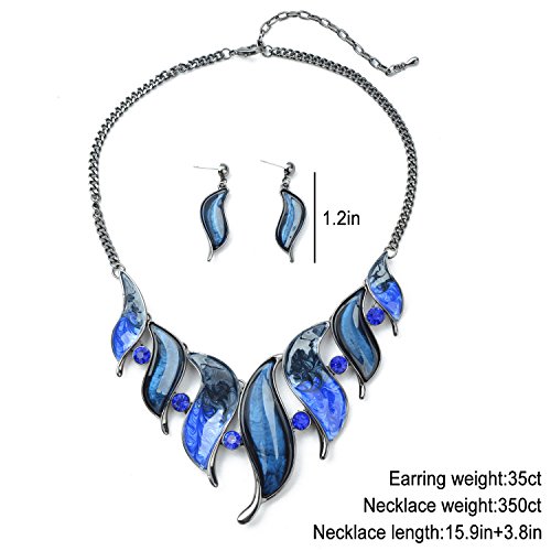 -. Feature : Material: rhinestone, resin and hypoallergenic alloy. Lead and nickle free for sensitive ears. / Length:43cm+7cm(16.9+2.75inch); Weight:93g/0.21b / The unique design and fashion style will attract people's attention, the shape look more noble. it fit any occasion,such as Anniversary,Party and so on / All handmade jewelry, well polished and one by one quality controlled with affordable prices and luxury appearance / Package included: a pair of earrings. a necklace, With gift box; Wonderful gifts for girls and ladies