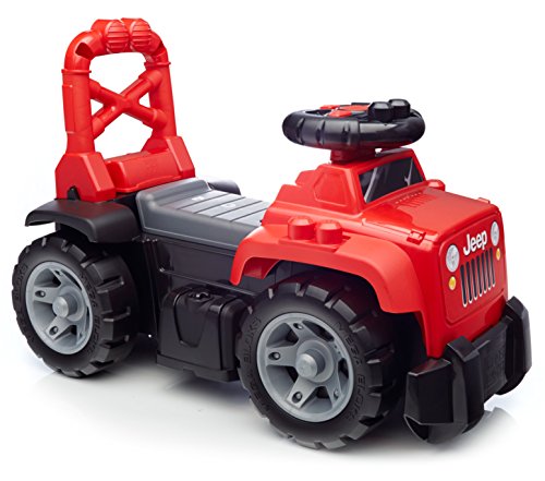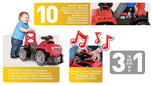-. Feature : Authentisch gestaltetes JeepRutschfahrzeug in typischen Farben / Mit den Steuerungsknöpfen" am Lenkrad lassen sich realistische GeländewagenGeräusche auslösen / Unter dem Sitz befindet sich ein Aufbewahrungsfach für die enthaltenen Bausteine und mehr / Dank der hohen Rückenlehne mit Griffen kann das Rutschfahrzeug auch als Lauflernhilfe verwendet werden / Jeep, 10 FirstBuildersBausteine zum Thema Jeep und 2 AlkaliBatterien AA (LR6), inkl.