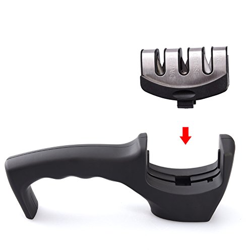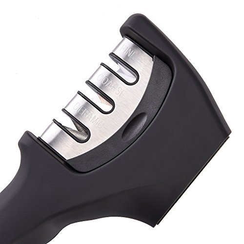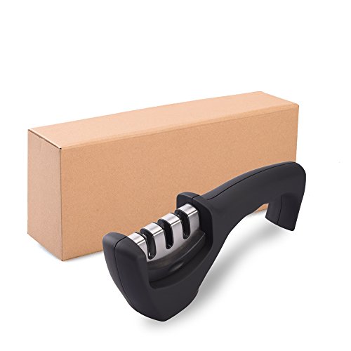 Uarter Professional Knife Sharpener 3 Stage Knife Sharpening Tool Manual knife Sharpener Kit, Black