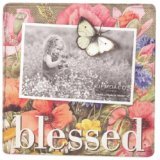 Colorful and artistic magnet photo frame; Features floral artwork and the word -blessed