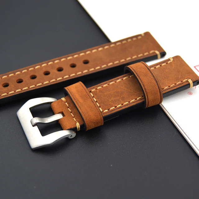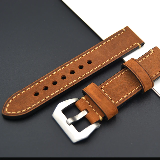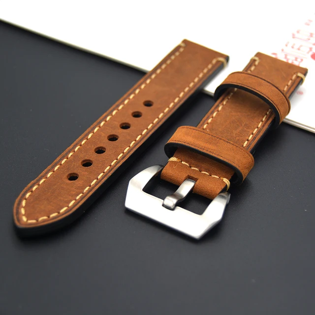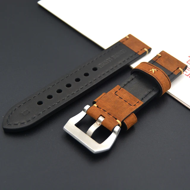 | [해외] 2017 브라운 손목 스틸 버클 스크럽 럭셔리 남성 소 가죽 스트랩 고급 시계 밴드 20 미리메터 22 미리메터 24 미리메터 26 미리메터 대한 파네 |
