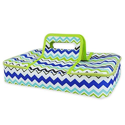 DII Insulated Casserole Carrier, Perfect for Holidays, BBQ's, Potlucks, Parties, To Go Lunches, Craft/Dish Storage & Monogramming - Chevron Blue/Green