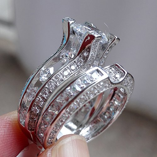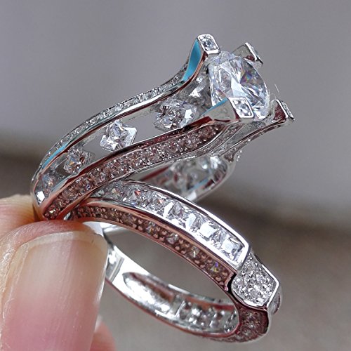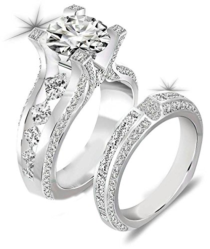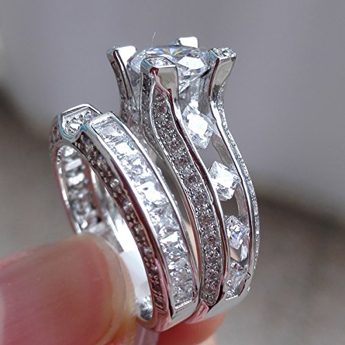 Title : Newshe Jewellery 3ct Round Cz 925 Sterling Silver Wedding Band Engagement Ring Sets Size 7
