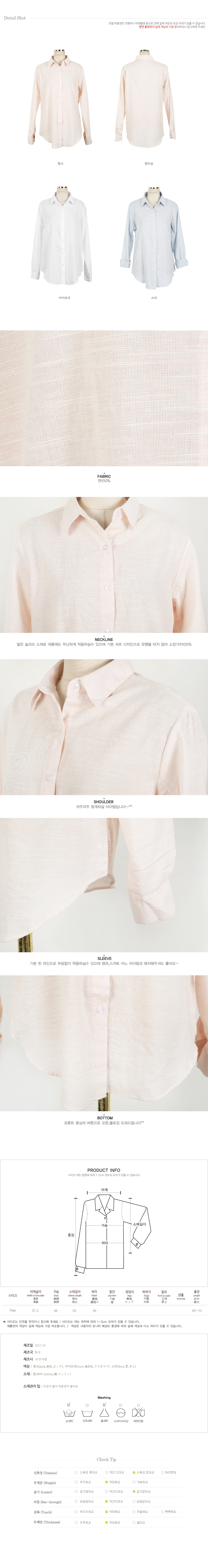 코튼100프로의 얇은 슬라브 소재감으로 여름시즌에도 부담없는 가벼운 느낌이에요