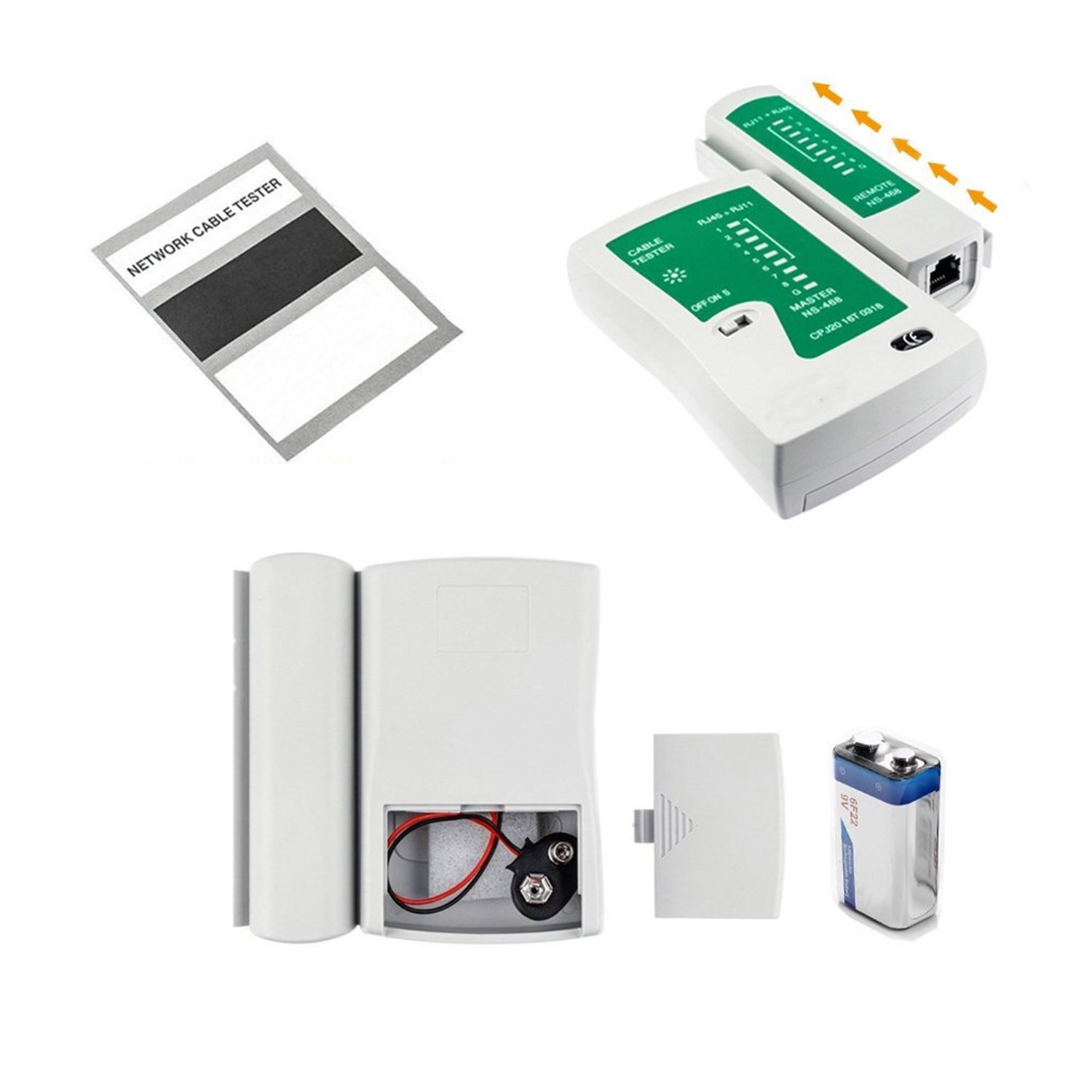 1 x LAN cable tester (English instruction manual of master unit + slave unit + tester, shared with RJ 45 and RJ 11)