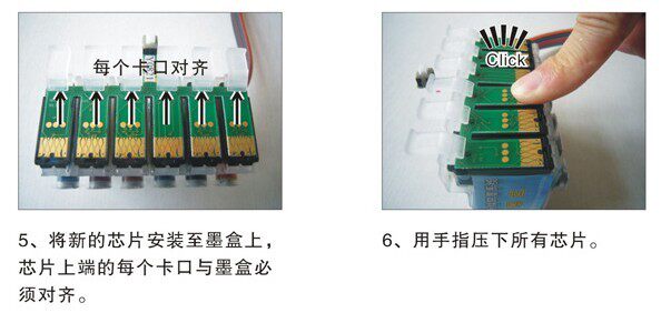 3.芯片型号与EPSON打印机墨盒型号相应,安装芯片时不可混淆,否则造成墨盒不认机,影响打印机的正常工作.