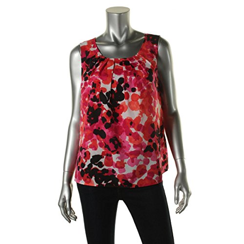 Kasper Black Women's Large Petite Pleated Abstract Blouse Pink PL
