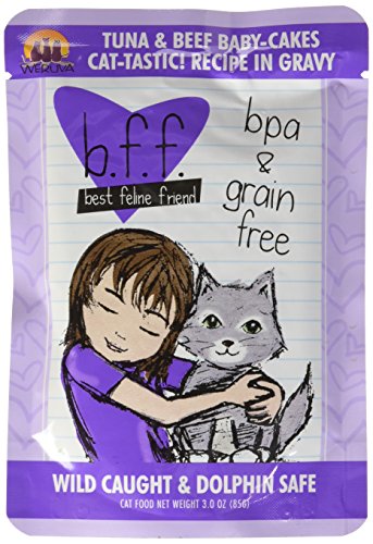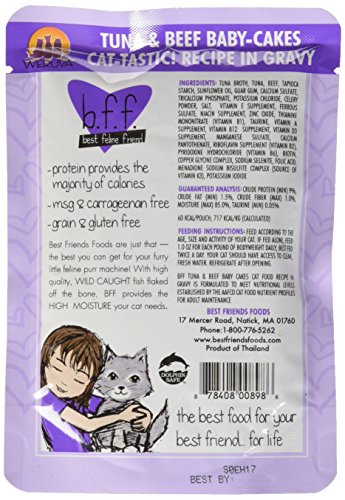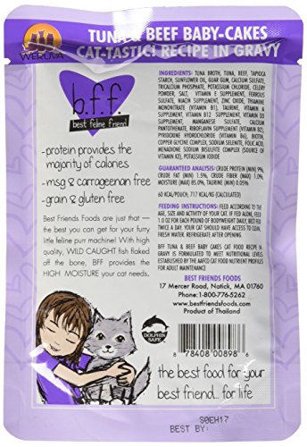 Best Feline Friend (B.F.F.) Tuna & Beef Baby Cakes with Tuna & Beef in Gravy Cat Food by Weruva, 3oz Pouch (Pack of 24)