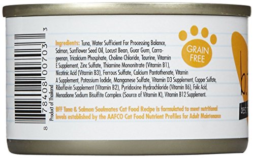 Best Feline Friend (B.F.F.) Grain-Free Cat Food by Weruva, Tuna & Salmon Soulmates, 3-Ounce Can (Pack of 24)