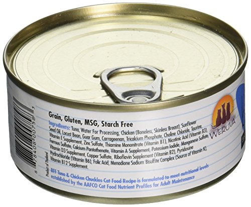 Best Feline Friend (B.F.F.) Grain-Free Cat Food by Weruva, Tuna & Chicken Chuckles, 3-Ounce Can (Pack of 24)
