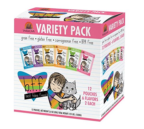 Best Feline Friend (B.F.F.) Grain-Free Cat Food by Weruva, BFF Variety Pack! Pouches, 3-Ounce Pouch (Pack of 12)