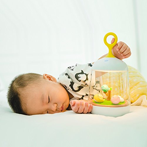 Music box: There is a clockwork spring under the music light, twist the spring for 3 rounds and the light will play a lullaby by the built-in music box.