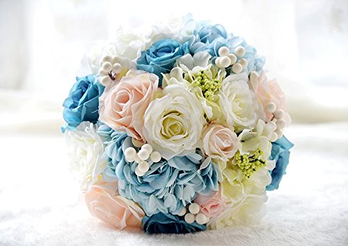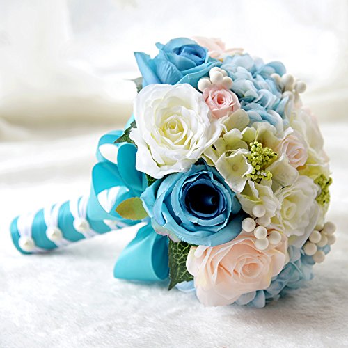 Abbie Home Wedding Bridal Bouquets Rose Penoy Bridemaid Holding Toss Silk Flowers-Tiffany Blue