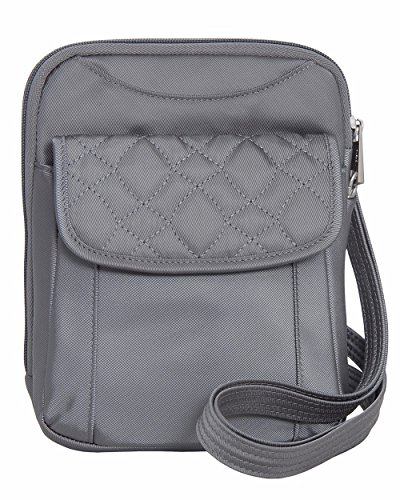 This slim bag is great for day trips, or sightseeing! Offers slash-proof, locking main compartment and shoulder strap which can be locked to a post or table. Comes with RFID blocking card and passport slots.. Also has a passport slot, several interior pockets, and a removable LED light.Feature