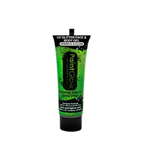 -. Binding : Misc. -. Brand : PaintGlow -. Color : Green -. EAN : 0744271606461 -. Feature : Easily applies with a brush or finger / Safe for face and body / Washes off with soap and water / Blacklight reactive ONLY. Does NOT glow in the dark / Fast USA shipping from DirectGlow -. IsAdultProduct : 0 -. Label : PaintGlow -. Manufacturer : PaintGlow -. Model : PGGLITTERGREEN -. MPN : B015JSXWK2 -. NumberOfItems : 1 -. PackageQuantity : 1 -. PartNumber : B015JSXWK2 -. ProductGroup : Beauty -. ProductTypeName : BEAUTY -. Publisher : PaintGlow -. Size : .34oz per bottle -. Studio : PaintGlow -. Title : Paint Glow 10ml/.34oz Blacklight Reactive Face and Body Glitter Gel- Mint Green -. UPC : 744271606461
