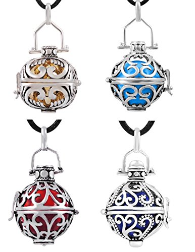 -. Feature : You'll get 4 pieces of Harmony ball cages+4 pieces of chime balls+4 pieces of 30 inches wax leather necklace. / Lead and nickel free,especially designed for pregnancy women,every average person can wear it,too. / Openable locket pendant,interchangeable inner chime ball. / SGS Quality certification,nickle and lead free! / Ship via USPS with tracking number,takes about 7-14 business days.