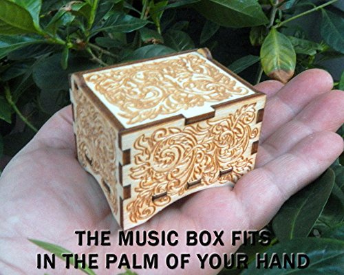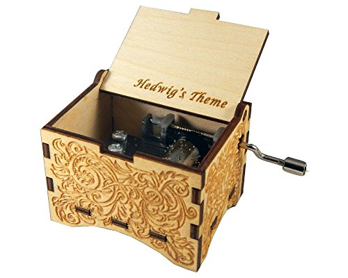 Personalizable Music Box, "Hedwig's Theme", Laser Engraved Birch Wood (Ornate Standard)
