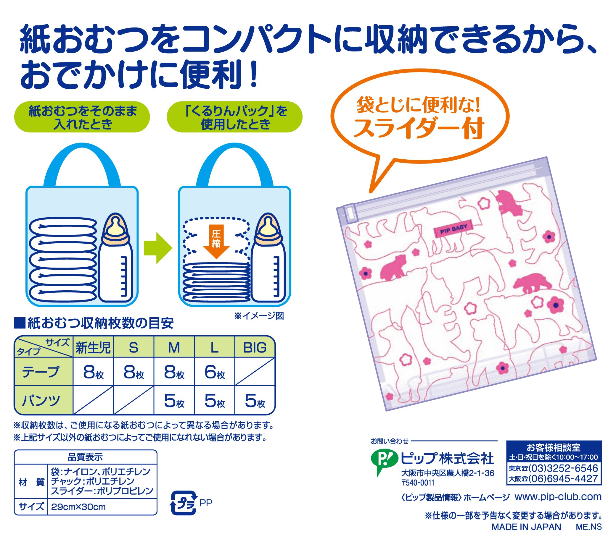 PIPBABY diapers compression bag Kururin two packs included ODK06