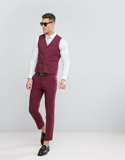 ASOS Wedding Skinny Suit PANTS In Wine