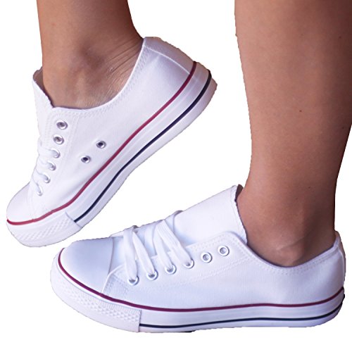 -. Title : Weißer Damen Sneaker Canvas Turnschuh, Casual Style Retro Halbschuh Schnürer
