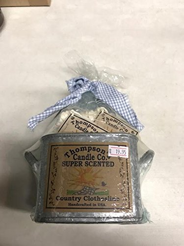 Thompson's Candle Co, Country Clothesline, Galvanized Tin Tote with 3 Super Scented Sachets