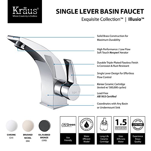 -. Title : Kraus KEF-14701 Illusio Single Hole Bathroom Faucet - Metal Pop-Up Drain Include,