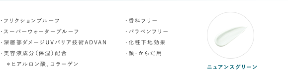 汗・水 さらに摩擦にも強く、落ちにくい。ベタつかず、使いやすいさらさらミルク。
