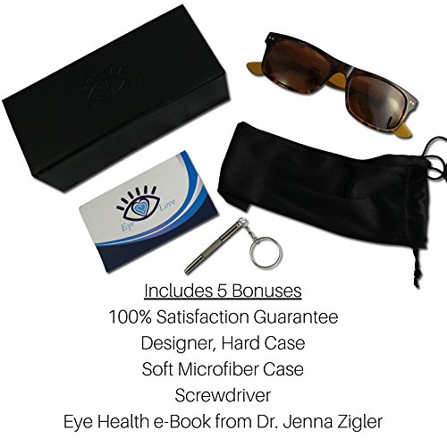 -. Feature : 100% SATISFACTION GUARANTEE → If for any reason your new sunglasses don't delight you, just email us and you will receive a courteous and prompt refund. It's that simple. / CLASSIC, TIMELESS WAYFARER COMPLIMENTS ANY LOOK → Easily move from your business attire work week into weekend casual with this sleek, designer frame. / POLARIZED LENSES THAT ELIMINATE GLARE → Lenses allow for uniform, crisp vision so you never miss a thing. / 100% UVA AND UVB BLOCKING FOR SUPERIOR EYE PROTECTION → Blocks the harmful sun's rays from damaging your eyes which can cause deep wrinkles, cataracts, macular degeneration, and cancer in and around the eye. / INCLUDES EYE HEALTH E-BOOK, A HIGH-END HARD CASE, SOFT MICROFIBER CASE, AND SCREWDRIVER → Easy storage with the large, velvet-lined case. Microfiber sleeve allows for simpler storage and cleaning. Screwdriver allows you to tighten those screws to keep them feeling brand new.