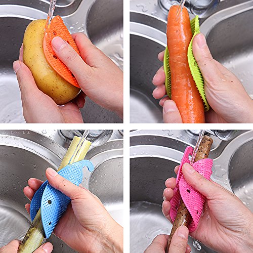 MZD Fruit and Vegetable wash Potato Scrubber Insulated Protect Cleaning Wash Brush - Rose Red, 12x10cm (Red)