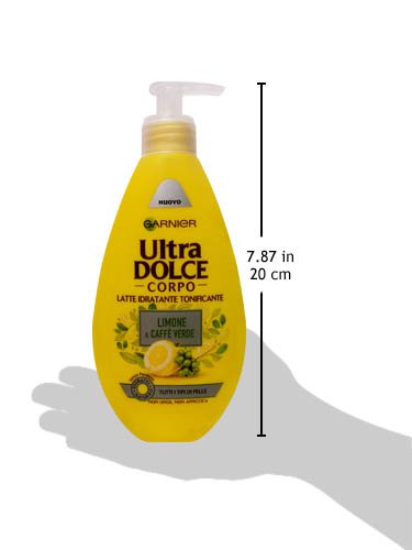 In its new recipe for moisturize and tone the skin, Garnier "Ultra Dolce" selects two extraordinary ingredients: the Essential Lemon Oil, cold squeezed to preserve its tonic properties, and the caffeine extracted from Green Coffee, known for its energizing power. Its fresh texture absorbs immediately, emanating a delicious fragrance with citrusy notes. Quickly moisturized and tonified day after day, the skin reveals again its natural beauty.Feature