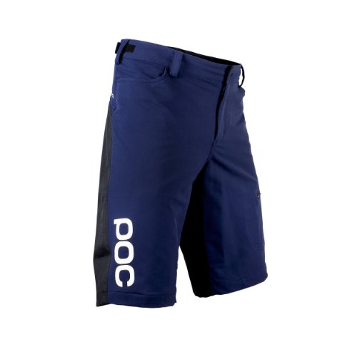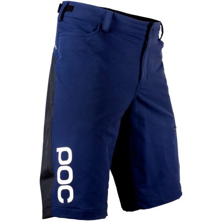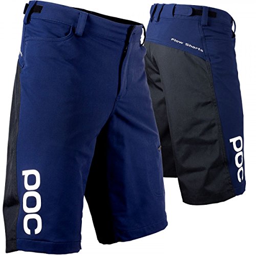 Studio : POC Publisher : POC Binding : Misc. Product Description Two distinct materials make up the POC Flow Shorts' outer shell: a nylon/spandex blend at the front and a durable nylon weave at the rear. The front panel's extra flex and give, which extends to the Flow's rear yolk as well, ensures these shorts let riders charge standing up, settle down on the saddle, or flatten table tops. The lower rear panels, on the other hand, provide strength that mountain biking demands to resist not only abrasion from natural pedaling, but also to brush off a dusty landing. Separating skin from the tough nylon, POC uses a smooth, polyester mesh lining. The liner's softness helps ward off irritation from friction, and it also keeps perspiration from putting a damper on the Flow. Available in even sizes from 28 to 38, the Flow Shorts use POC's hook-and-loop waist adjustment to evenly distribute pressure and be easy to adjust with gloves. Lastly, two front pockets and a zipped side allow ample storage, and POC's Flow Shorts come in the colors Boron Blue and Thulium Blue. 0