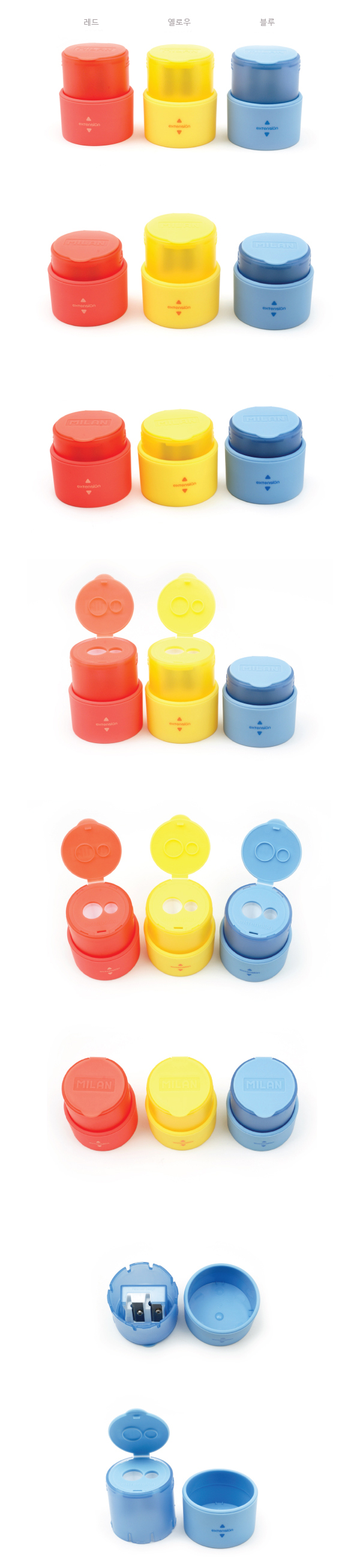 스페인 문구브랜드 MILAN에서 확장형 연필깎이가 입고되었다. 톡톡튀는 컬러와 지금까지 보지