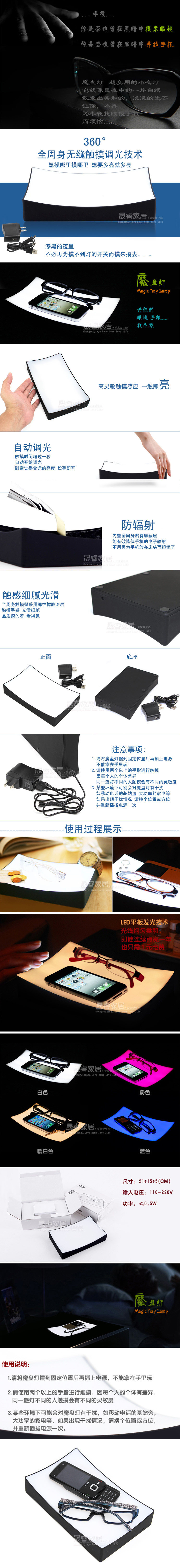 Nightlight various kinds of cells available in the market variety? dazzling? this Mopan were greatly sought after? in the dark? his soft? dazzling lights? to bring you warmth? Mopan light? ultra-practical Nightlight ? it's like the night of a white? emitting a soft? faint light? so you no longer midnight glasses? cell phones and trouble! seamless whole body full of light-touch technology? want to feel where he touched where you want and more light can be high sensitivity touch sensitive? explosive? touch time more than one second? automatically starts dimming? brightness to the appropriate release-handed. Both affordable and practical.