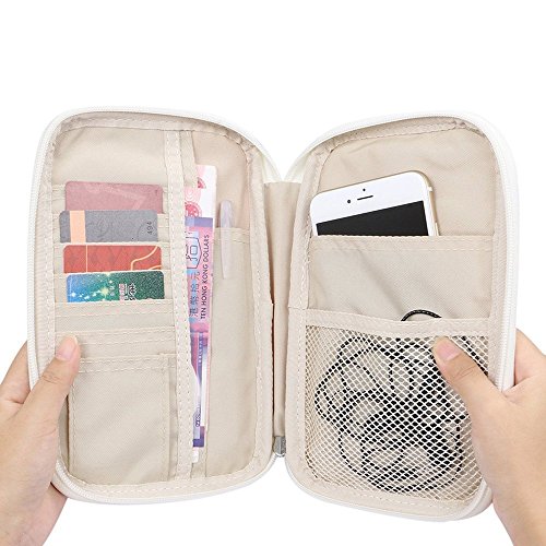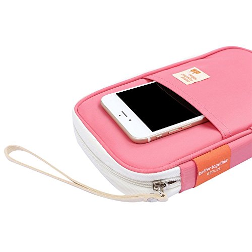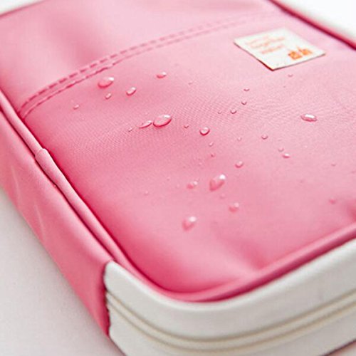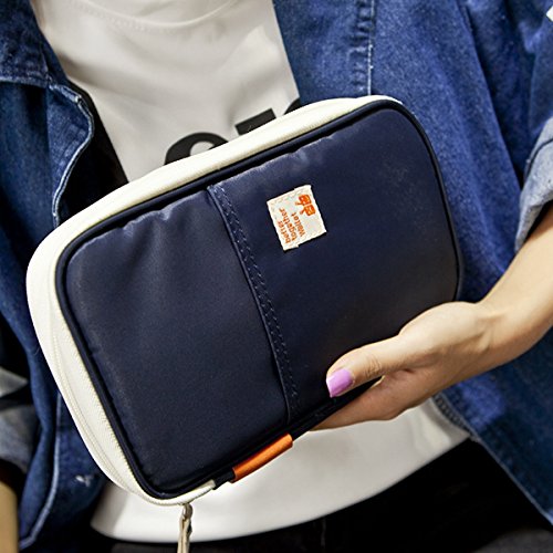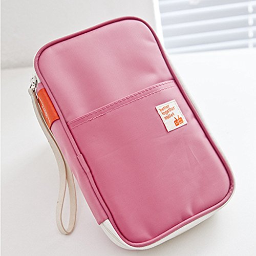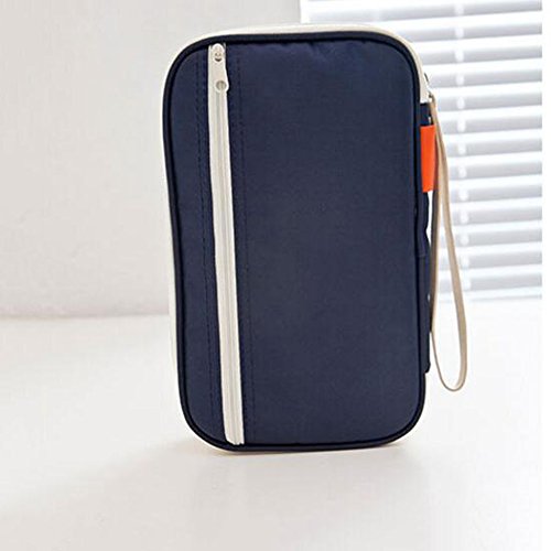 Product Description Multi-pocket design and zipper closure, a good organizer separate things out and keep tidy and a perfect size to store in a rucksack or suitcase, ensuring that your important documents are not damaged by other items stored in these. Function: - The perfect design brings lots of convenience, lightweight, easy to carry. - Zippers closure makes sure your items safe. - With convenient slots for bank cards, ID Card, Passport, portable pen, cash ,coin ,ticket, boarding card, shopping invoice, etc. - Keep your things in order. - Fits into your briefcase, handbag, messenger bag or knapsack. - Use for: home, travel, camping, business trip, etc. Specification: Material: durable linen, polyester, nylon? Size: Size: 5.3 x 8.7x 1.4 inches (22x13.5x3.5 cm). Color: Dark Blue/Pink Lightweight, durable material for business travel, zipper closure Package include: 1x Passport Wallet