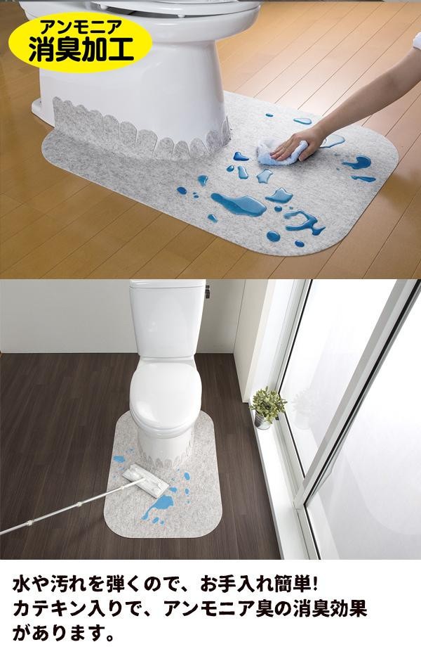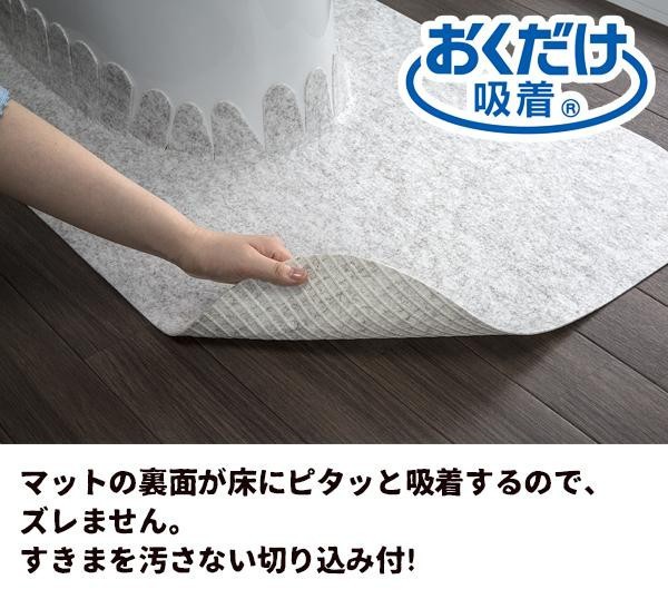 水や汚れをはじく、お手入れ簡単な大理石調トイレマットです♪すきまを汚さない切り込み付!!サイズに合わせてハサミやカッターでカットすることができます。マットの裏面が床にピタッと吸着するので、ズレません。カテキン入りで、アンモニア臭の消臭効果があります。生地が薄いのでつまずきにくく、扉の開閉の妨げにもなりません。 |