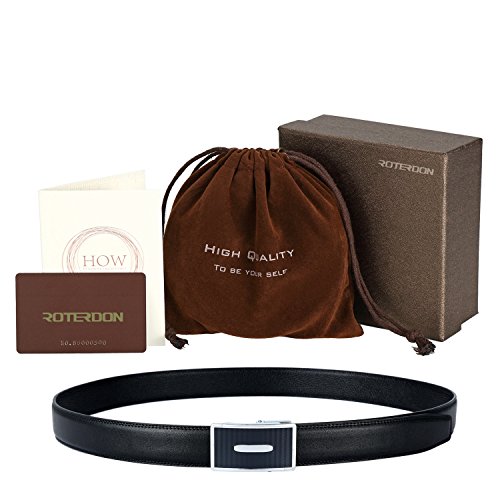 Men's Luxury Series Genuine Cowhide Leather Ratchet Belt with Removable Buckle - Perfect for Dress Pants, Jeans, Chinos, Trousers . ROTERDON Belt Features: 1.Fashionable leather belt provides 30 unique adjustments for an extremely comfortable fit.