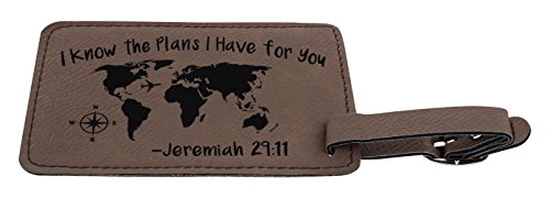 Product Description The perfect travel gifts for women or travel gifts for men are easy with this Christian world traveler themed luggage tag set. Laser engraved luggage tags are excellent travel gifts for women or travel gifts for men. Easily identify your luggage with these unique luggage tags. 2 luggage tags are included in this personalized luggage tag gift set. These durable laser engraved luggage tags will never peel or fade, remaining easily visible for many trips to come. An adjustable and easy-to-use luggage tag buckle keeps your luggage tag securely attached to your checked large luggage, carry-on luggage, travel backpack, or duffle bag. These lightweight luggage tags are durable and easy to identify, making them the perfect luggage tags for cruise ships, carryon luggage tags for airplanes, or luggage tags for trains. Each luggage tag includes a removable contact sheet protected by a plastic film. You could also fit a business card or other identification in the slot as well. Luggage tags make great honeymoon gifts, gifts for newlyweds, college graduation gifts, study abroad gifts, or birthday gifts for travelers. 0