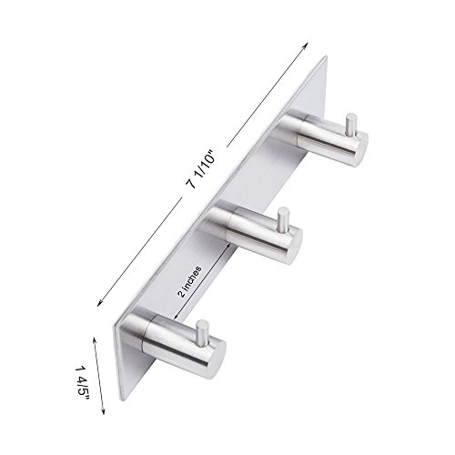 Leyden TM Bath Towel Hooks Rack Robe Hook Key Rack 3-Hook Rail Garage Storage Organizer, Brushed SUS 304 Stainless Steel