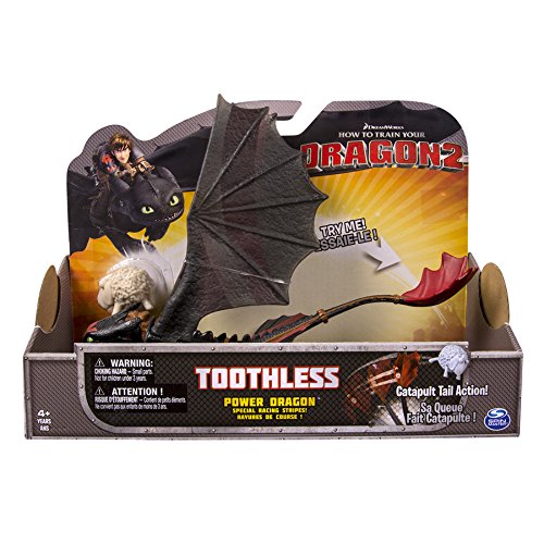 -. Binding : Toy -. Brand : Dreamworks Dragons -. EAN : 0778988093764 -. Feature : The Catapult Tail Toothless Power Dragon is 11-Inch long, can send sheep flying and has adjustable wings! / This Toothless Power Dragon is designed with Special Racing Stripes / Choose from Toothless, Monstrous Nightmare, Deadly Nadder and many more Power Dragons! / Combine Power Dragons with 3-inch Viking figures (sold separately) and take to the skies with DreamWorks Dragons! / Includes: 1 Power Dragon 1 Sheep -. IsAdultProduct : 0 -. Label : Spin Master -. LegalDisclaimer : In no event, regardless of cause, shall West Road Creative, LLC be liable for any indirect, special, incidental, punitive or consequential damages of any kind, whether arising under breach of contract, tort (including negligence), strict liability or otherwise, and whether based on this agreement or otherwise, even if advised of the possibility of such damages. -. Manufacturer : Spin Master -. Model : 20067153 -. MPN : 20067153 -. PackageQuantity : 1 -. PartNumber : 20067153 -. ProductGroup : Toy -. ProductTypeName : TOYS_AND_GAMES -. Publisher : Spin Master -. Studio : Spin Master -. Title : Dreamworks Dragons How to Train Your Dragon 2 Power Dragon Catapult Tail Toothless: Racing Edition Action Figure -. UPC : 778988093764 -. Warranty : No Warranty