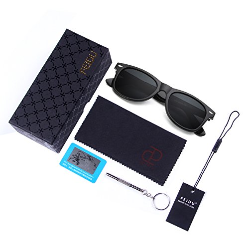 Size Lens Width: 1.57" Lens Height: 2.08" Frame Length: 5.43" Bridge Width: 0.74" Arm Width: 5.55" Package 1x Sunglasses 1x Soft Glasses Cloth 1x Spectacle Case 1x Screwdriver 1x Exquisite Packaging Carton FEIDU SUNGLASSES Style and Quality is what we convey to our customers. Make You Look Good with unique designs from FEIDU. FEIDU FD 2149 Polarized Wayfare Sunglasses Features The Filter Category of these Sunglasses is 3: General Purpose Sunglasses. Purchase from WSUK with confidence that the glasses you receive are fully CE certified and 100% UV400 protective. 100% UV Protection 100% UV400 Protection and Polarized: Restore true color, eliminate reflected light and scattered light, make the scenery more clear and soft and protect eyes perfectly, provide clearer, sharper and more accurate vision. 100% UV400 protection, filters out 100% of UVA, UVB, UVC and harmful blue light up to 400nm Classic Brand Wayfarer Design Wayfarer wrap around design. Looks low-key but reveals your high-end taste and style. Suitable for Outdoor Activities Men and women alike, whether you're into driving, fishing, baseball, golf, if you love this classic retro looks or if you're a Kurt Cobain nostalgic, a fancy motorcycle rider or a traditional clubmaster lover - all could use the benefits of the polarizing effect.