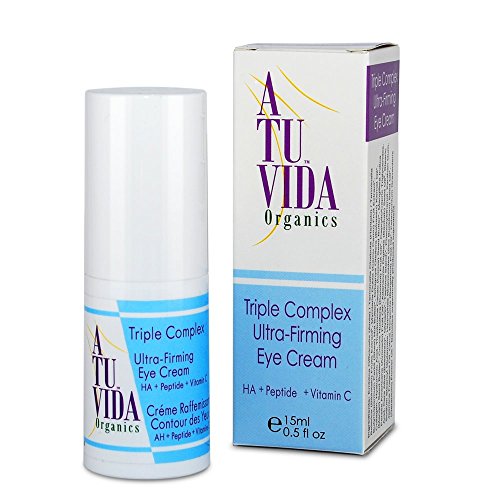 Do you struggle with dark circles, puffiness, and saggy skin under your eyes? Try A Tu Vida Organics’ Triple Complex Ultra-Firming Eye Cream and see the difference for yourself! ? Restore a natural glow to your skin and protect against sun damage, scarring, and age spots. This light, soft cream leaves no residue and can be used under makeup. Apply twice a day after cleansing, morning and night. ? Our unique blend of ingredients makes our eye cream stand out from the rest. Experience the triple benefit of: - Hyaluronic Acid:? Increases elasticity by helping the skin retain up to 1000 times its weight in water. The increased moisture content fills in those fine lines and gives you plumper, younger-looking skin.?