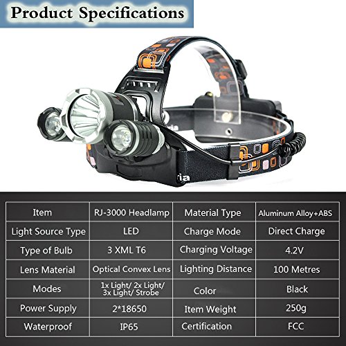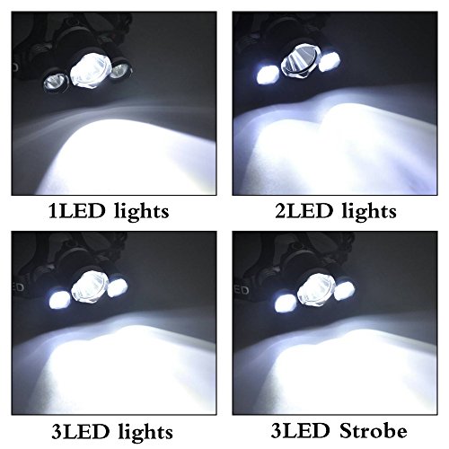 Hands-free headlamp,Adjustable, Rechargeable, 4 working mode: high/ middle/ low/ flashing.Super Brightness for long distances ,Up to 100 yards visibility in the pitch black