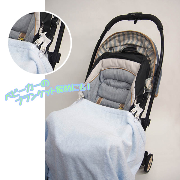 ●2連使いで、敷布団と敷きパッドを挟んでもOK!ベビーカーのブランケットを留めることもできます。