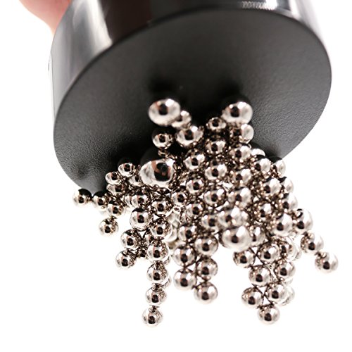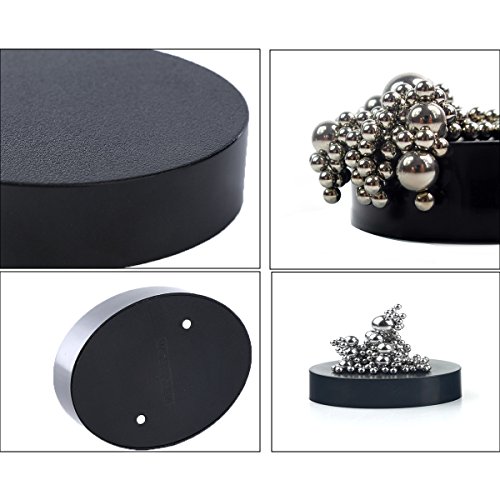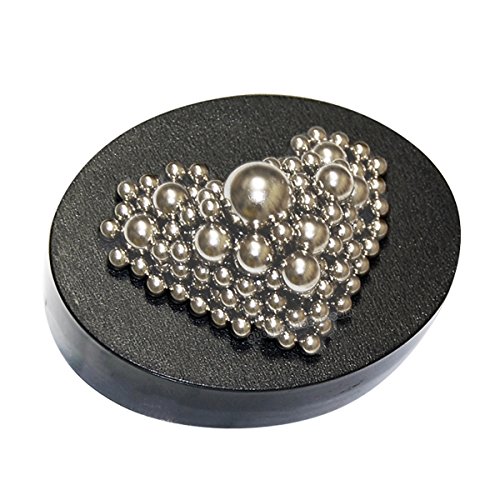 -. Feature : Material - The magnetic desk toy is made of magnet, metal and high quality ABS. / Fun Idea - We use the magnetic base to control the metal balls ("not magnetic") and make the different sulptures. That's the main point of this product, and it is also difficult. / Included - The magnetic sculpture has three different sizes of metal balls. Largest (just one) about the size of a dime, the smaller ones (160 pcs) are like BBs, 10 pcs are a little larger. They are not magnetic, only the black base is. / Enjoyable - The desk toy will keep you occupied, it is fun to sit and play with while you are on long boring things. / Function - Creative desk toy for adults to relieve stress and develop intelligence.